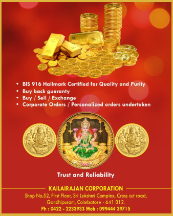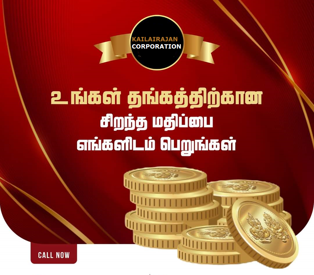 Welcome to Kailairajan Corporation, your trusted partner in gold buying and selling in Coimbatore, Tamil Nadu. With a commitment to integrity, transparency, and excellence, we specialize in purchasing gold jewelry and offering high-quality gold coins and bars. As an authorized dealer of MMTC-PAMP, we provide certified gold products that meet the highest standards of purity and authenticity.